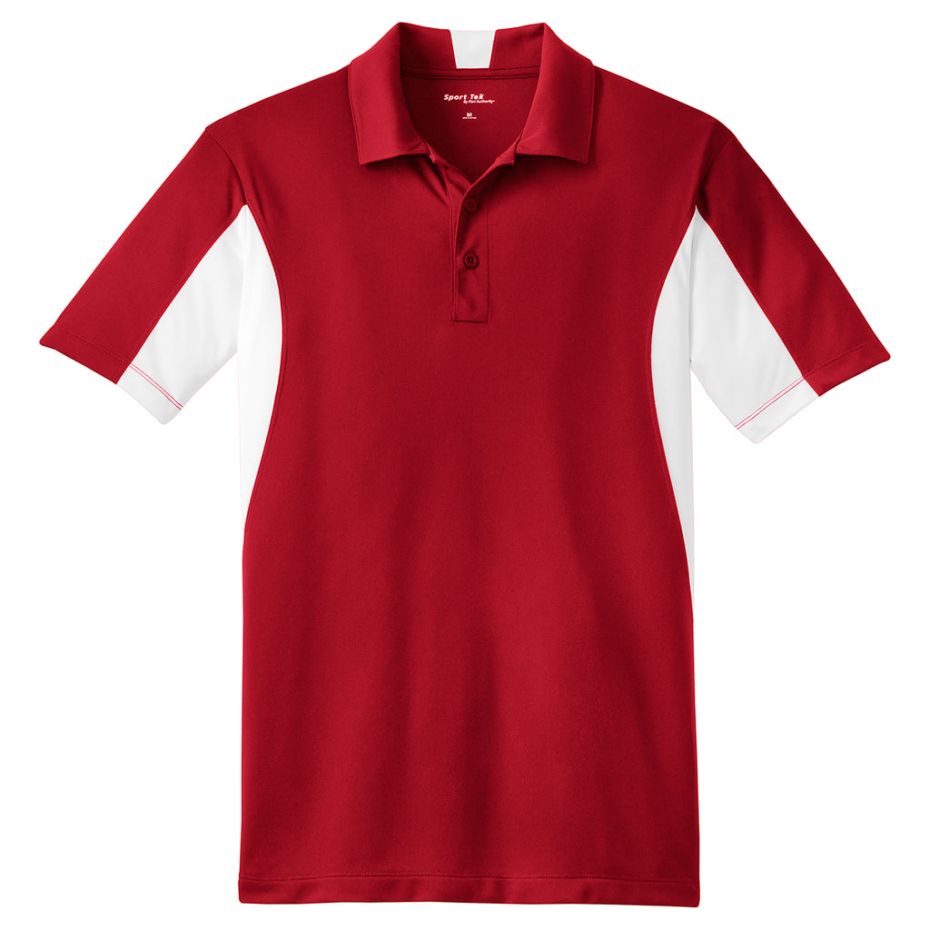 Sport-Tek Men's True Red/White Side Blocked Micropique Sport-Wick Polo
