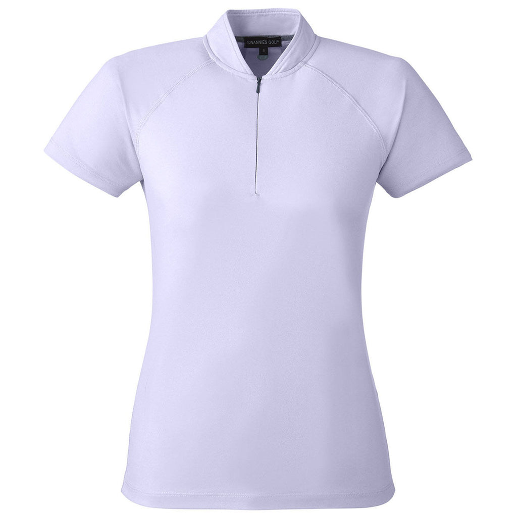 Swannies Golf Women's Lilac Grey Heather Quinn Polo with a custom logo is the updated style any woman can love. The hidden zipper mock neck adds a bit of style to the polo, whether practicing your backswing, hitting the range, or hanging out with friends. Full stretch allows you to move in any way you need to play your best. Place an order today.