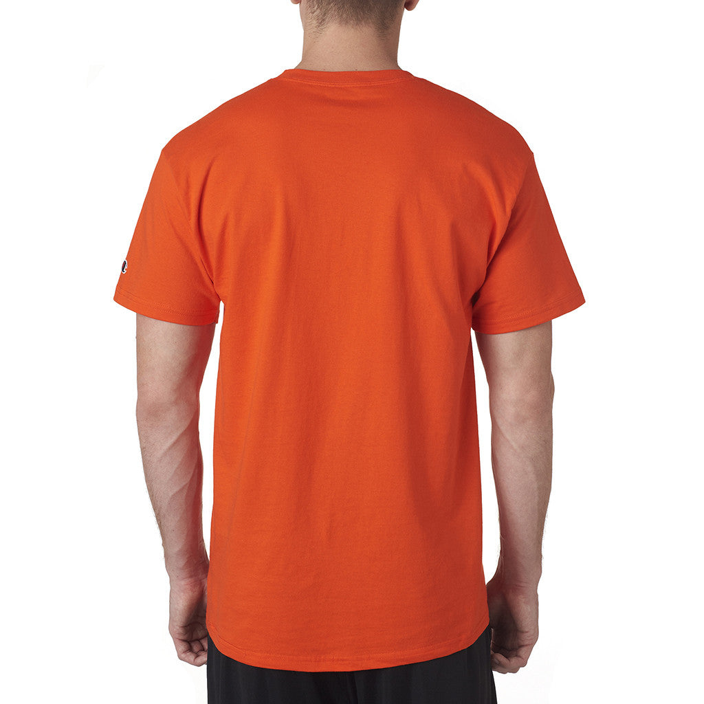 If your employees need a new tee that won't fall apart after a few wears look no further your silkscreened logo and rugged construction of Champion will make you the Champion during your swag hand-out. Classic, timeless-this is everything you could hope for in a T-Shirt. In fact, we wager that you might even want to buy a bunch just to keep your closet stocked. Incredibly versatile, the Screen Printed Champion Men's Orange S/S T-Shirt can be worn alone or layered with other. Items to create a whole new look. The Screen Printed Champion Men's Orange S/S T-Shirt is made with 100% preshrunk heavyweight cotton. It is tagless to prevent neck irritation. There is a high-stitch density that allows for superior screen printing quality for any of your logo needs.