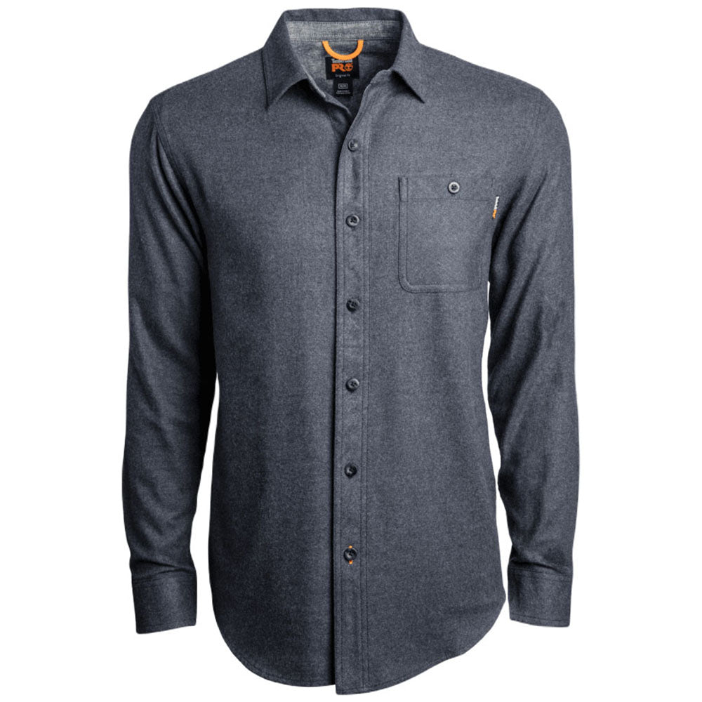Timberland Men's Navy Heather Woodfort Mid-Weight Flannel Shirt with custom embroidery is a flattering choice for an upscale casual look. The button-front placket, shirttail hem, and Chambray accents create a look that can go from the office to the bar with friends with ease. Choose a company logo to create professional options for foremen or managers. Place your order today.