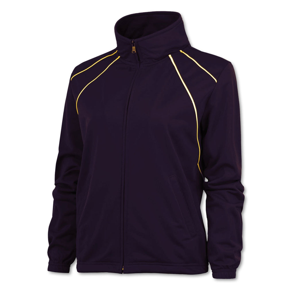 A lot of women like to wear the same type of all-weather jackets as their male counterparts. The BAW Women's Purple/Gold Dual Line Tricot Jacket will fit the bill. Your logo will be on a permanent piece of their all-year wardrobe. Ladies will like that it is bit creative with the dual trim accents. It is made of heavyweight polyester so it is easy care and durable. There is a full center front zipper and front pocket. An open bottom has a drawstring and cord lock. There are many colors available. Sizes are available from S to 3X.Corresponding Men's Style: BAW Men's Purple/Gold Dual Line Tricot Jacket