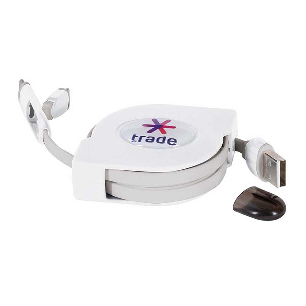 Get an extra mile with the custom Innovations White/Grey 6 Foot Retractable USB Cable - never run out of charging range again! The cable has 2 different connectors (micro/lightning) which makes it compatible with most electronic devices. Print your custom logo on the device and use it as an event giveaway to increase awareness of your company during a trade show or corporate event.The minimum order for this product is 25 pieces.