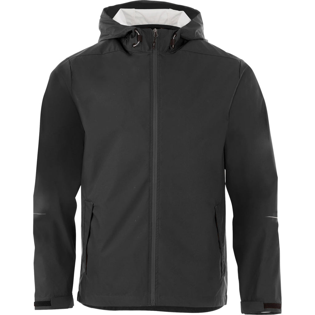 The changing weather is a wondrous opportunity for your company to grab attention and earn loyalties with weatherproof promotional apparel. Case in point: Elevate Men's Black Cascade Jacket. No rain can permeate this cozy rain jacket. It lets your customers and employees be prepared for inclement weather with its full seam waterproof build that guards against the elements. Other highlights include a waterproof zipper, adjustable cuff tab, reflective accents and cinch hood. Gifts that provide protection to recipients strengthen their loyalty to your company or organization. Customize this full zip waterproof jacket for men with an embroidered logo or name of your company to maximize brand exposure!Corresponding Women's Style: Elevate Women's Black Cascade Jacket