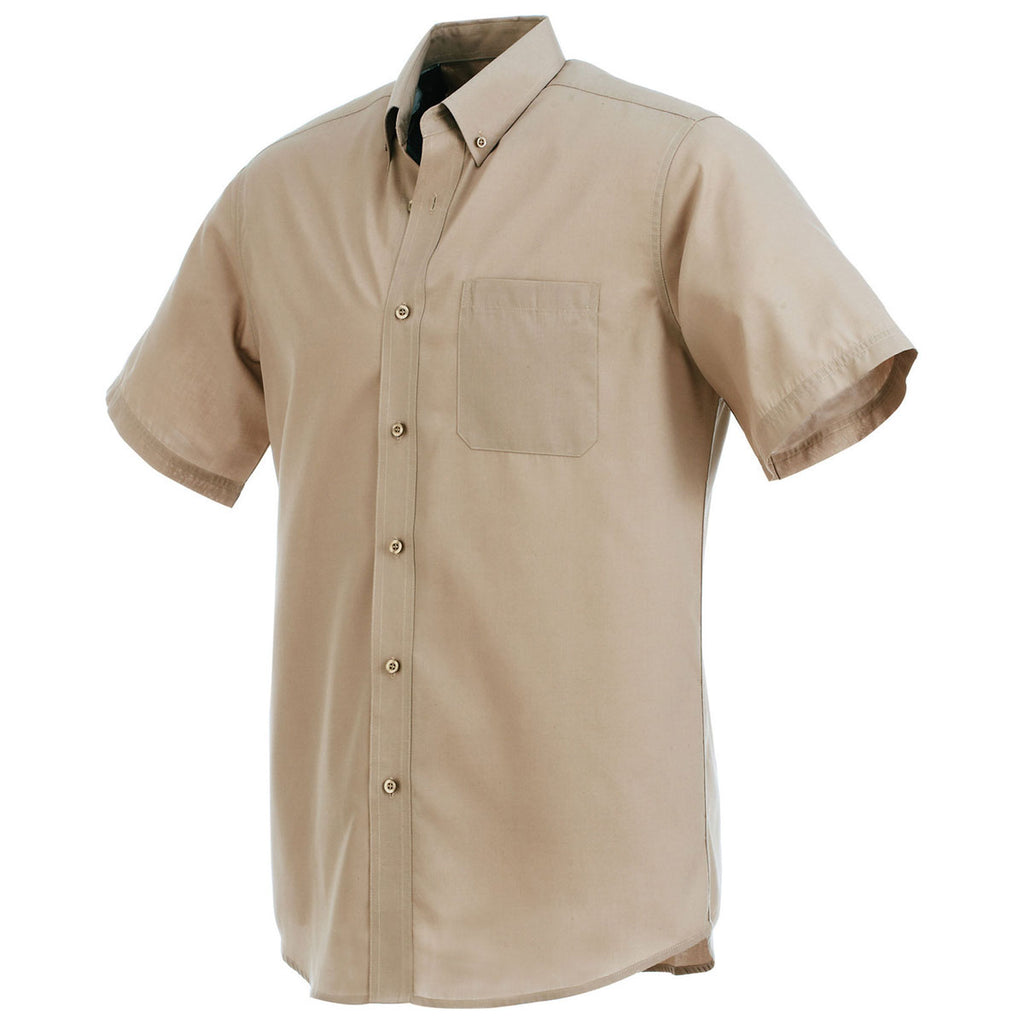 With the Elevate Men's Tan Colter Short Sleeve Shirt and your custom logo your employees will look sharp and classy even during hot summer days. This poly-cotton blend features an upper patch pocket. It comes in a variety of stylish colors and is sure to be the shirt of choice during the heat. If you want to give your employees a gift they will surely use, choose the Elevate Men's Tan Colter Short Sleeve Shirt. Wherever they go, they will advertise your brand, so be sure you include this item in your next corporate giveaway. Advertising has never been easier. Your employees will appreciate this high-quality gift.Corresponding Women's Style: Elevate Women's Tan Colter Short Sleeve Shirt