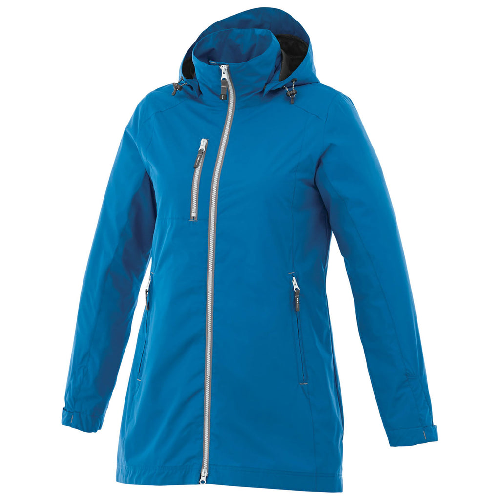 If you are looking for a great present for your next corporate giveaway, the Elevate Women's Olympic Blue Ansel Jacket with your company logo on it is the perfect choice. It is waterproof, has breathable coating and water repellent finish so your employees will love it during rainy days. It is designed with a detachable snap off hood. Its additional interior pocket with velcro closure and a secondary mesh stowable pocket are ideal place for your phone, wallet or car keys. Give your employees a gift they will use during their outdoor activities. Whether they are hiking, biking or just walking through the park, they will bring this jacket with them.