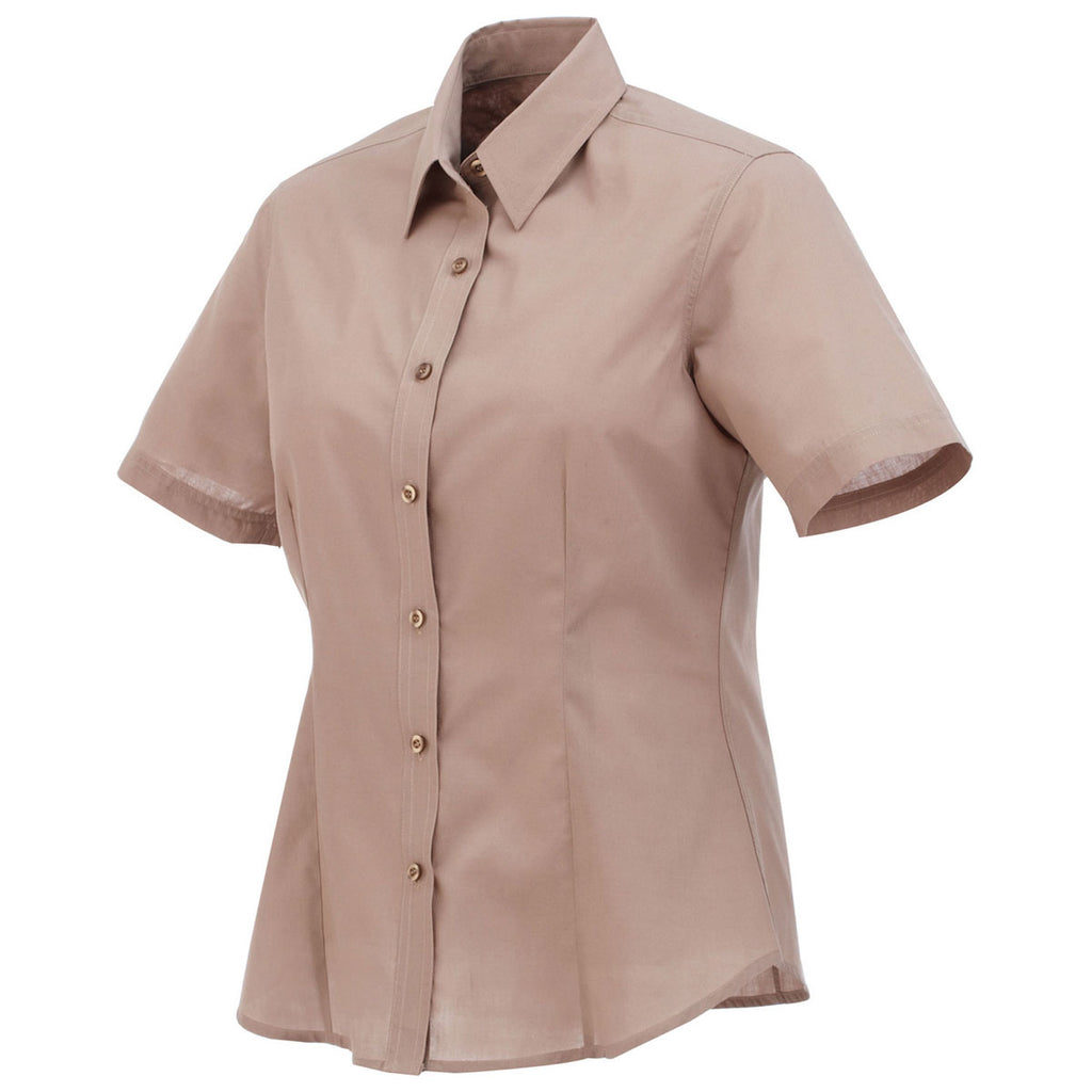 The Elevate Women's Tan Colter Short Sleeve Shirt with your custom logo will look very stylish on your female employees. If you have a corporate event coming soon, consider including this apparel in your giveaway. Show your employees you appreciate them by giving them this high-quality item. Every time they want to look casual and professional at the same time, your employees will reach for this shirt. The Elevate Women's Tan Colter Short Sleeve Shirt is made from poly-cotton and has a flattering fit. It comes in a variety of beautiful colors. Choose the one that goes with your company logo and give your employees a quality gift they deserve.Corresponding Men's Style: Elevate Men's Tan Colter Short Sleeve Shirt