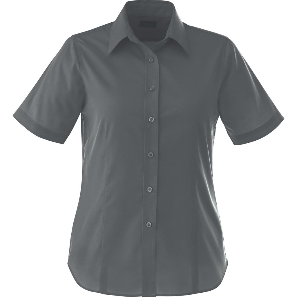 Every woman needs a classic work shirt in her closet, so give your female employees the Elevate Women's Grey Storm Stirling Short Sleeve Shirt with your custom logo on it. It has shaped seams and a tapered waist for a more flattering fit. It is comfortable and looks sharp, so your employees will appreciate this useful gift. It has a decoration-friendly design and is available in several colors. Include this shirt in your corporate giveaway and put a smile on your employees' faces. They will proudly wear it and subtly advertise your brand wherever they go. Make your logo shine on the Elevate Women's Black Stirling Short Sleeve Shirt.Corresponding Men's Style: Elevate Men's Grey Storm Stirling Short Sleeve Shirt
