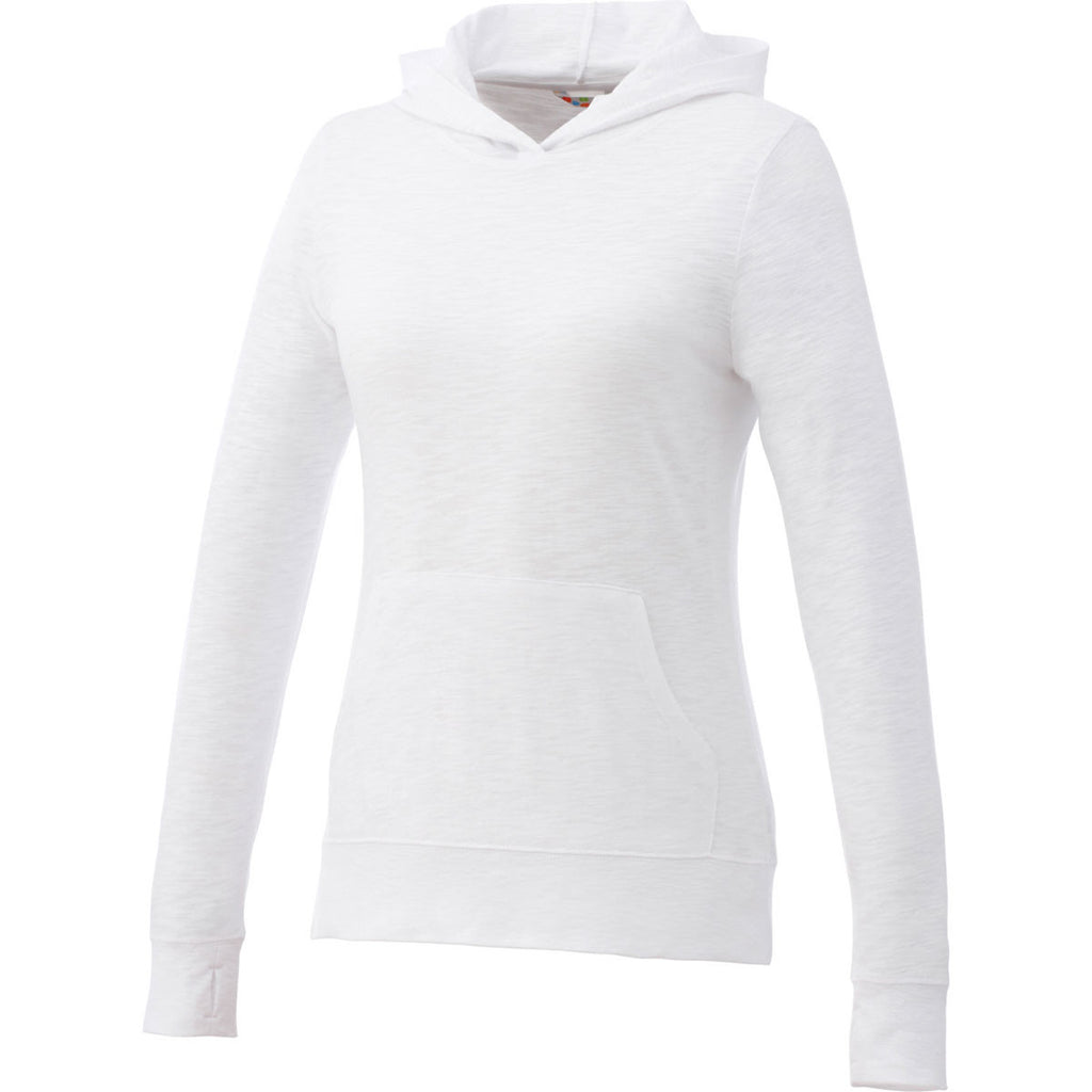 If it's time for your brand to get a boost, then there's no better article of clothing to turn to than the classic hoodie. Particularly when you're taking about the Elevate Women's White Howson Knit Hoodie. Lightweight and comfortable, this hoodie is great for corporate summer events. This hoodie features a front pouch, interior media pocket, and sleeve cuffs. All that's really missing here? Your unique logo added to this piece so you can give this out as a gift, use it for team events, or incorporate it into your latest marketing promotions.Corresponding Men's Style:Elevate Men's White Howson Knit Hoodie
