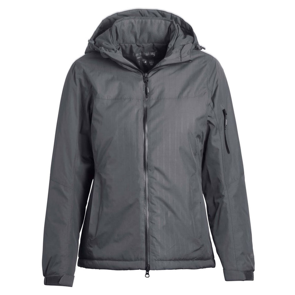 A coat of Durable Water Repellent turns the company logoed Landway Women's Charcoal Sierra Thermal Shell Parka into the ultimate in outdoor corporate apparel. Whether you wade into a stream to catch fish or find yourself in a raging snow storm, the moisture resistant coating keeps you comfortably dry throughout the day. Rugged 100% ripstop nylon resists rips and tears to remain in pristine condition for years to come. Attach your corporate logo on the large imprint area to generate buzz for your products and services at business conferences. With a custom logo, you establish your company as a serious player in your industry.Corresponding Men's Style: Landway Men's Charcoal Sierra Thermal Shell Parka