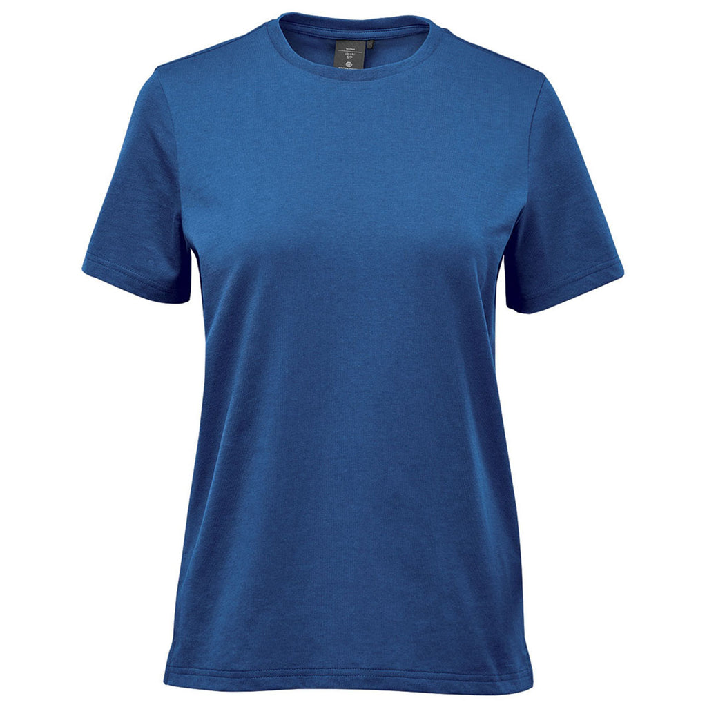 Add embroidery to the Stormtech Women's Classic Blue Settebello Short Sleeve Tee for a versatile option that will get you noticed. The classic tee design is made from sustainably sourced materials that transport moisture away from the body to keep you cool and looking good all day. Great for outdoor fun, running errands, or even as uniforms where needed.Corresponding Men's Style: Stormtech Men's Classic Blue Settebello Short Sleeve Tee