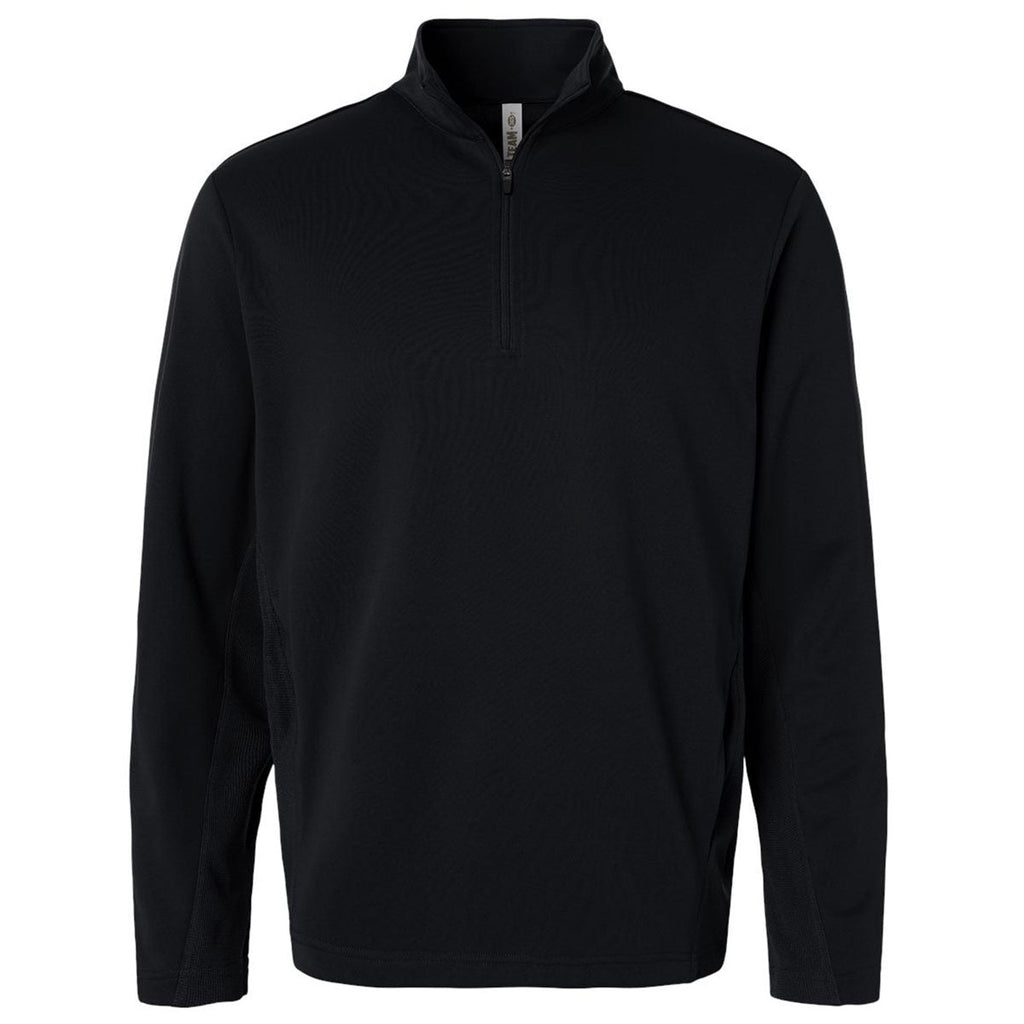 The Team 365 Unisex Black Squad Cadet Quarter-Zip Tech Fleece Pullover combines lightweight warmth with a polished athletic look, ideal for custom or corporate branding. Its cadet collar and tech fleece construction offer comfort and durability for practices or work environments. A smooth surface enhances logo clarity, while its versatile style supports both team wear and retail use.Highlights
