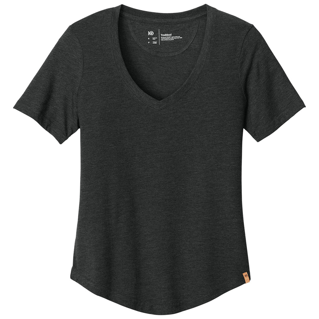 Add your logo to the tentree Women's Meteorite Black Heather TreeBlend V-Neck T-Shirt. The lightweight, sustainable V-neck creates a feminine fit that can be dressed up or down as needed, making it a great transition option from the office to a night out with friends. The 4-way stretch means you can work all day and dance all night as the top maintains its shape and your mobility.