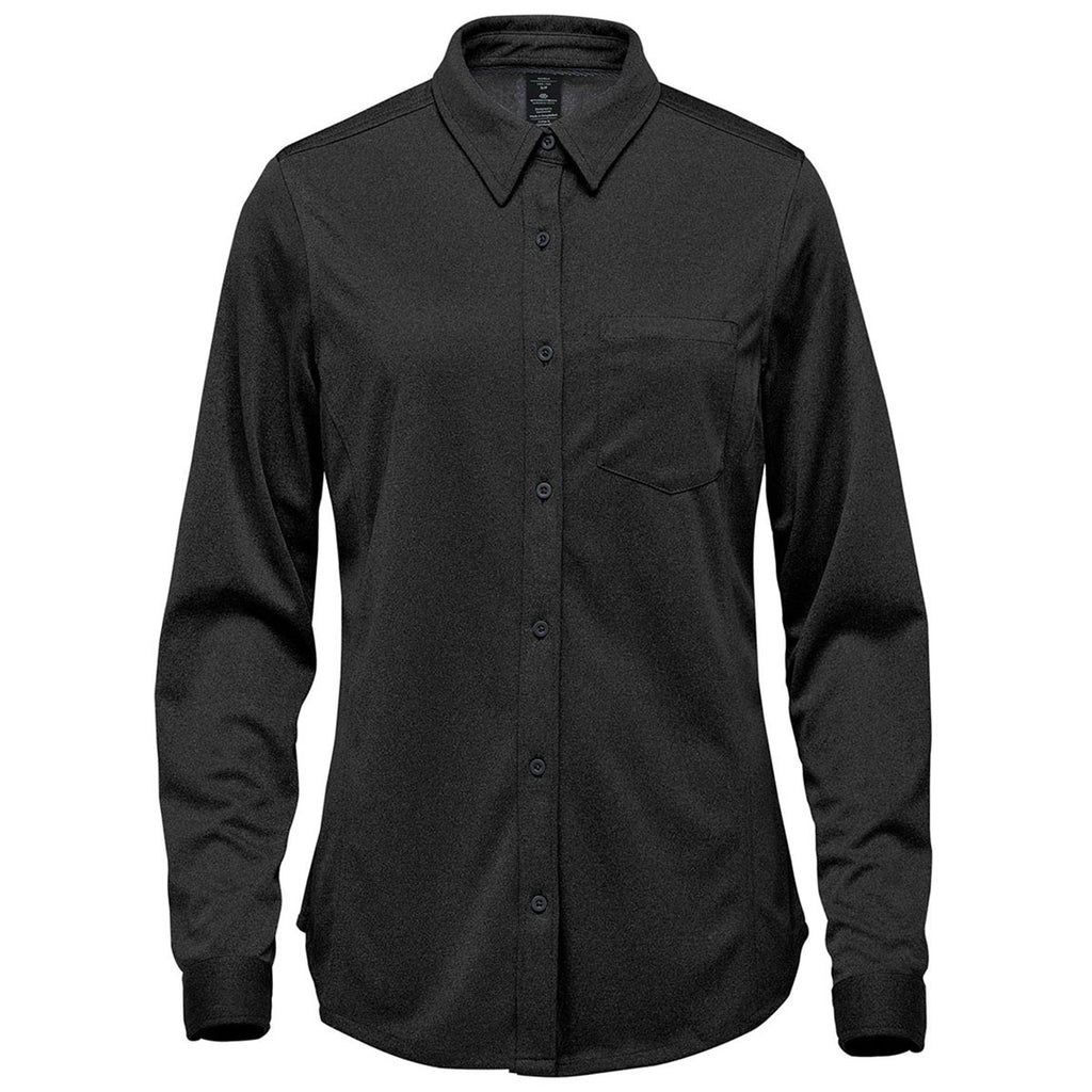 Your team will always be cool, comfortable, and confident when they're wearing a Stormtech Women's Black Montauk Long Sleeve Shirt that features your company's custom logo or design. Along with a sleek, polished silhouette, this long-sleeved design includes UPF 50+ fabric and includes superior STORMTECH H2X-DRY moisture management technology.