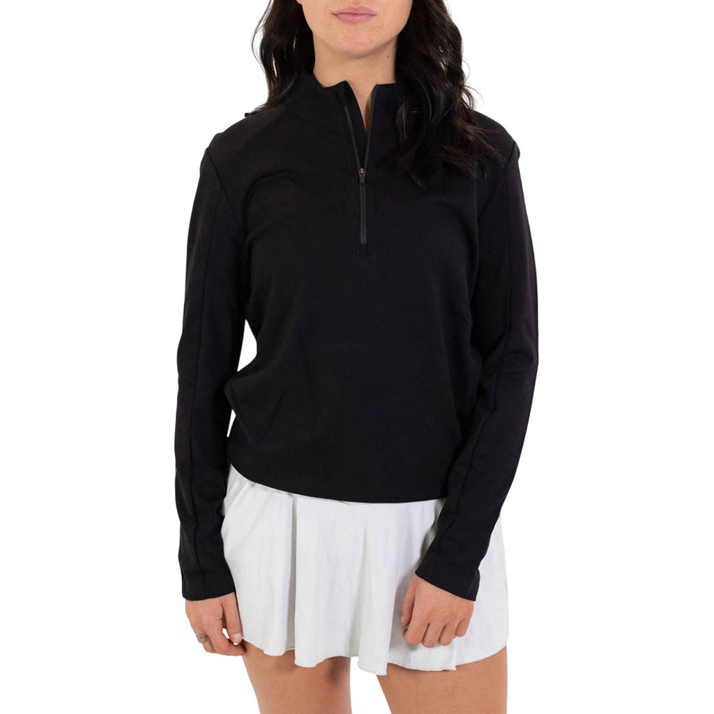 Add embroidery for the TRUE Women's Black All Day Quarter Zip to create a custom look that you can enjoy or share. The breathable pullover with UPF protection, 4-way stretch, and anti-wrinkle properties is ideal for pairing with a tennis skirt, shorts, slacks, or other athletic wear to make sure you are protected without being inhibited.Highlights