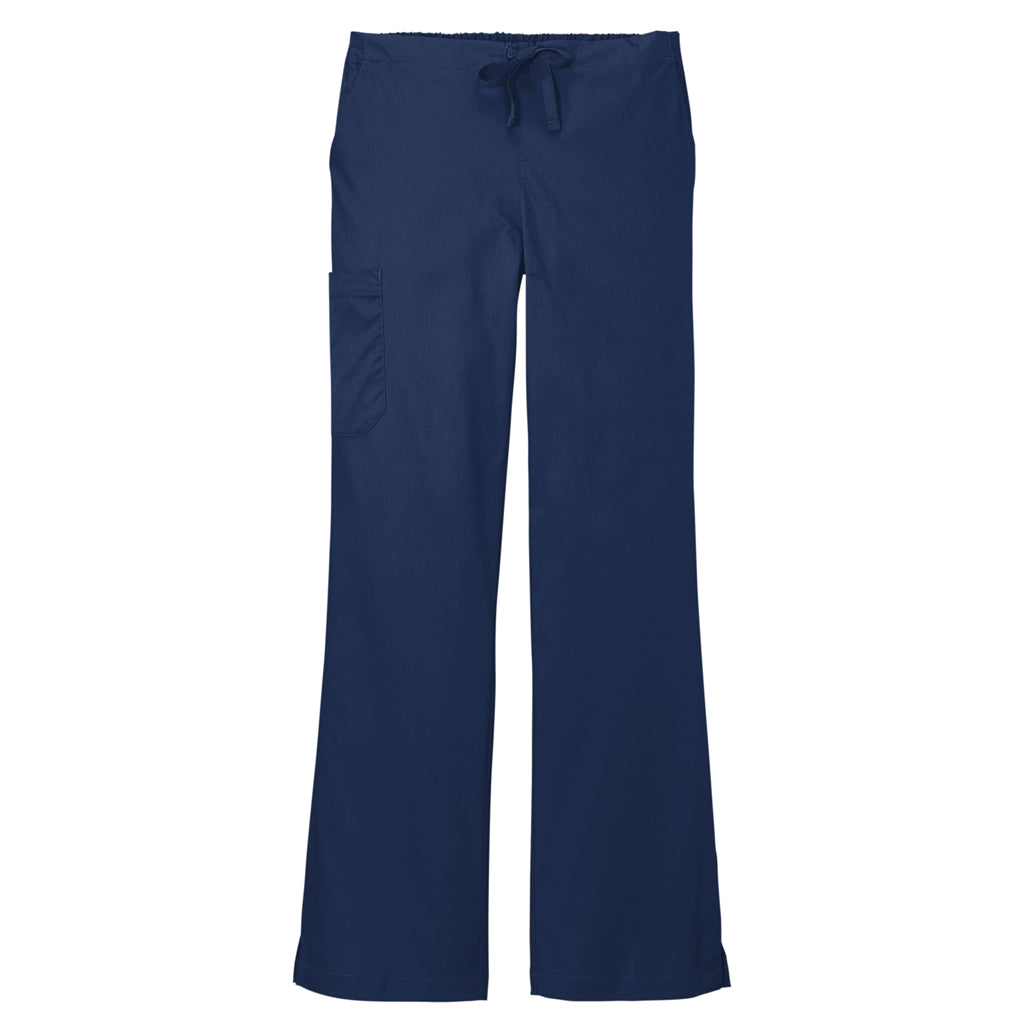 A slightly wider leg makes the WonderWink Women's Navy WorkFlex Flare Leg Cargo Pant a comfortable option for the ladies on your team. Designed for healthcare professionals, they're made from a mechanical stretch fabric that is exceptionally easy to move in. Add your company's custom logo to create a stylish uniform look.