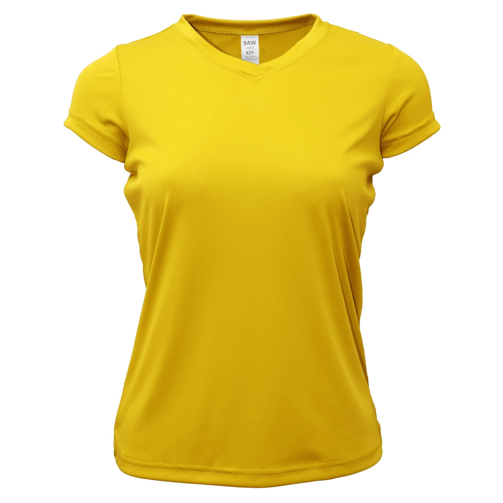 No one could accuse you of not selecting the right color of women's T-shirt for your company sponsored promotion! The BAW Women's Gold Xtreme Tek T-Shirt comes in a variety different shades. Just imagine your custom logo on the front of each one. Your promotion could be the gold at the end of the proverbial rainbow. This ladies' tee is available in sizes 2XS to 3X, and the material is so comfortable and breathable that recipients will wear it every chance they get. This is a tee that will not shrink and also offers UV protection. Whether you're having an anniversary celebration or gift with purchase, you just can't go wrong!Corresponding Men's Style: BAW Men's Gold Xtreme Tek T-Shirt