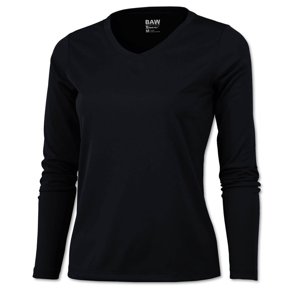 What woman wouldn't be pleased to receive the BAW Women's Navy Xtreme Tek Long Sleeve Shirt? It has quality sewn in from shoulder to bottom hem. What will make this shirt even more attractive is your custom logo in bold across the front. You have so many choices in color from bright red to orange sherbet. When people see your logo on a quality shirt, they automatically think of you as a quality company. Prospective customers will have already been introduced to your name - all you have to do is close the sale! Custom logoed shirts have always been a great incentive product.Corresponding Men's Style: BAW Men's Navy Xtreme Tek Long Sleeve Shirt