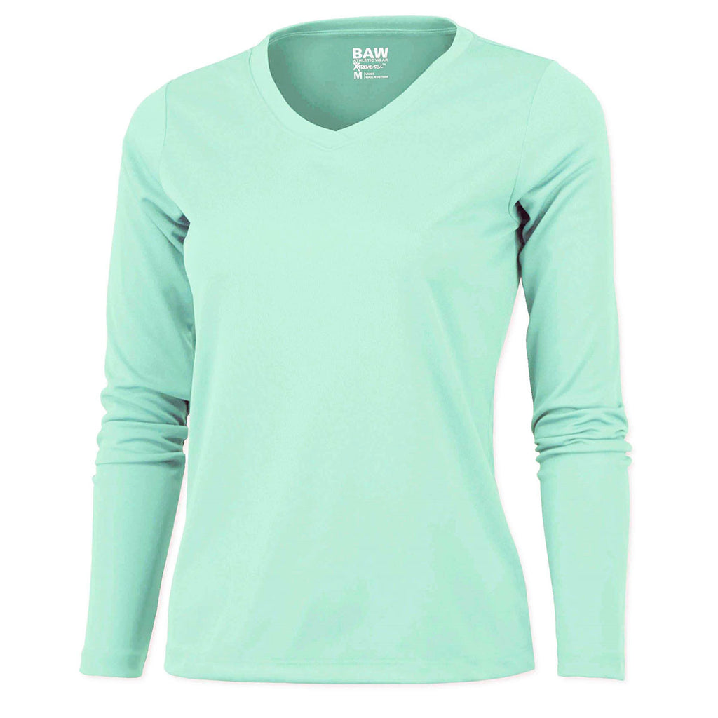 What woman wouldn't be pleased to receive the BAW Women's Sea Foam Xtreme Tek Long Sleeve Shirt? It has quality sewn in from shoulder to bottom hem. What will make this shirt even more attractive is your custom logo in bold across the front. You have so many choices in color from bright red to orange sherbet. When people see your logo on a quality shirt, they automatically think of you as a quality company. Prospective customers will have already been introduced to your name - all you have to do is close the sale! Custom logoed shirts have always been a great incentive product.Corresponding Men's Style: BAW Men's Sea Foam Xtreme Tek Long Sleeve Shirt