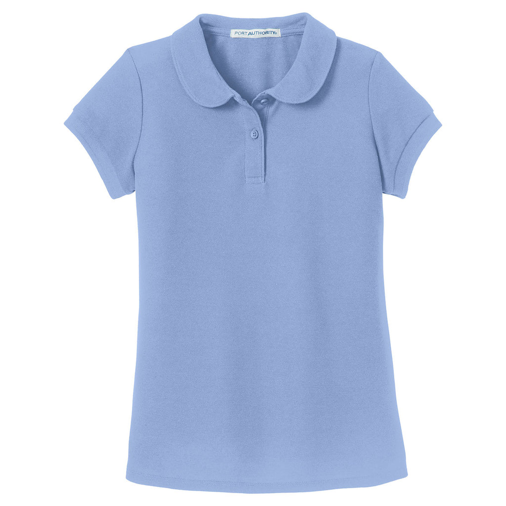 Port Authority Girls Light Blue Silk Touch Peter Pan Collar Polo