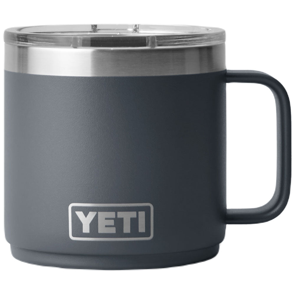 It doesn't matter if you're sitting by the campfire or at your desk - the YETI Charcoal Rambler 14 oz Stackable Mug is essential. The easy-grip handle makes it great for sipping, while the high-grade stainless steel keeps your drink at an ideal temperature. All it's missing is your company's custom logo or design.