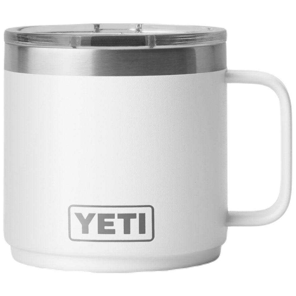 It doesn't matter if you're sitting by the campfire or at your desk - the YETI White Rambler 14 oz Stackable Mug is essential. The easy-grip handle makes it great for sipping, while the high-grade stainless steel keeps your drink at an ideal temperature. All it's missing is your company's custom logo or design.