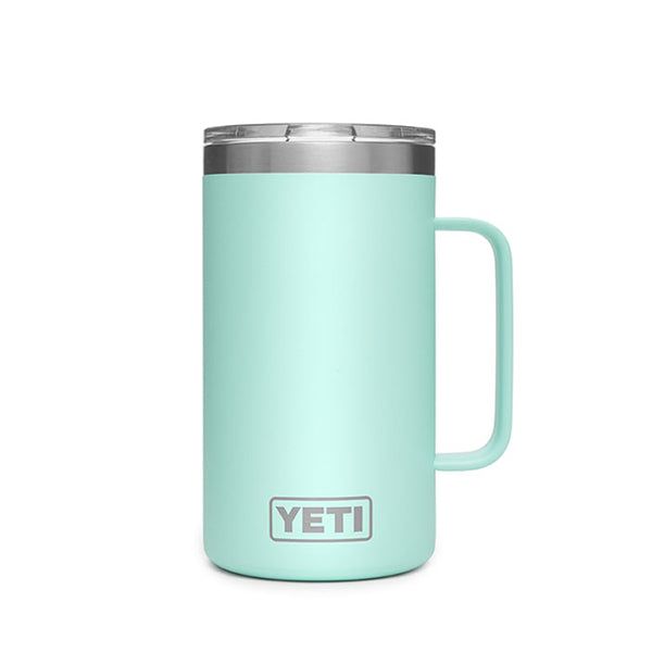 Going on a camping trip? Bring this custom logo YETI Seafoam Rambler 24 oz Mug and pair it with your favorite beer. The Rambler holds drinks well and keeps the contents nice and frosty for a longer time, and it's also safer to use than your regular glass mug. Turn the custom mug into an event giveaway for your trade shows, recruiting events - add your company logo to the corporate YETI Seafoam Green Rambler Mug for instant advertisement!