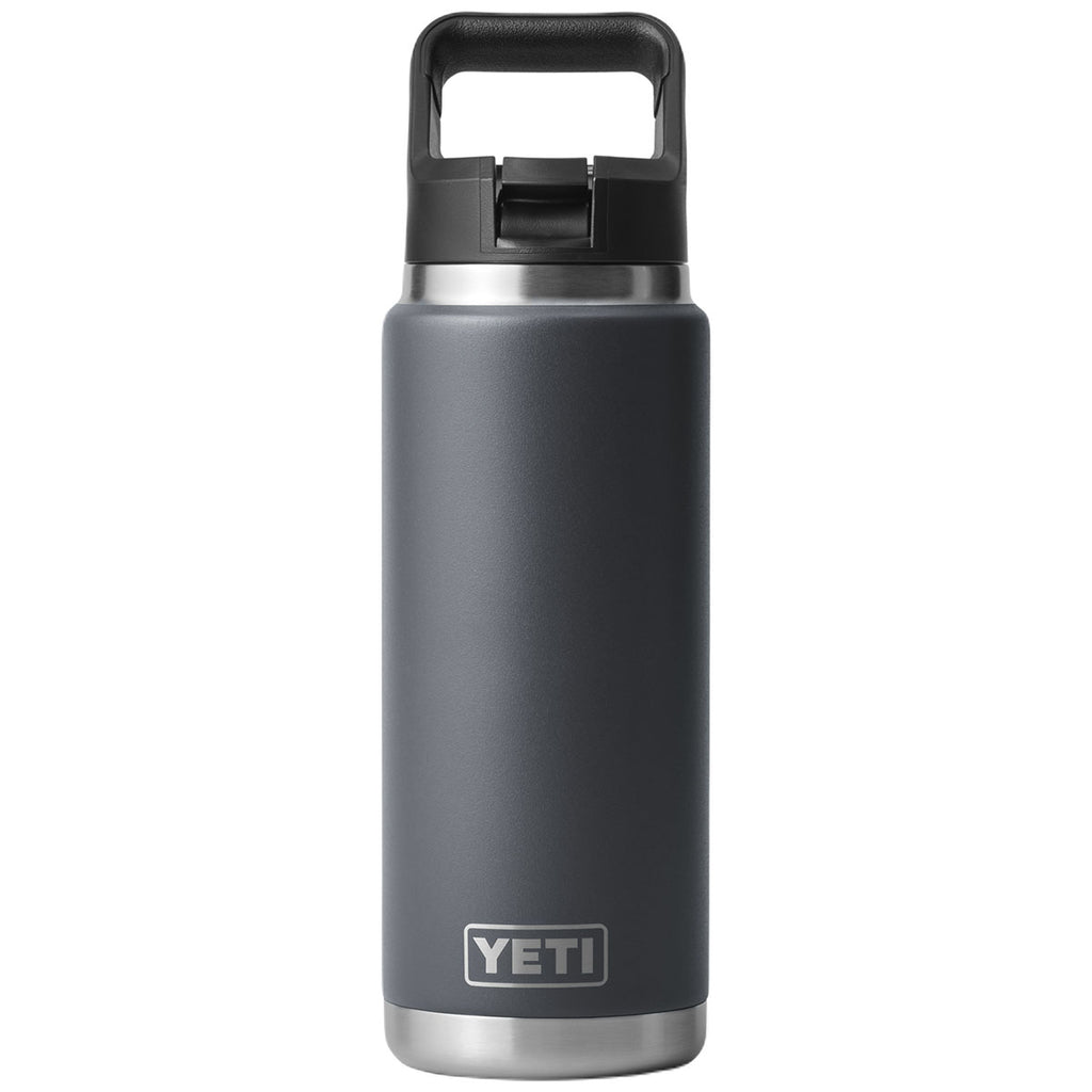 If keeping your team hydrated is essential, add your company's custom logo or design to the YETI Charcoal Rambler 26 oz Water Bottle W/Straw Cap. This sleek accessory features a sleek, stylish design that everyone will want to show off. Superior insulation means it keeps beverages cold or hot all day long.