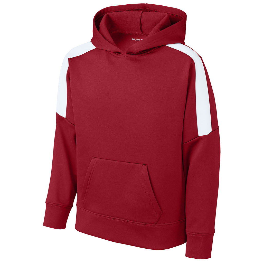 Sport-Tek Youth Deep Red/ White Sport-Wick Fleece United Pullover Hoodie with a custom logo is the perfect choice for creating a school look that everyone can enjoy. The simple hoodie with a front pouch pocket can be worn alone or layered as needed for sports, class, or organized events. Place an order right away.