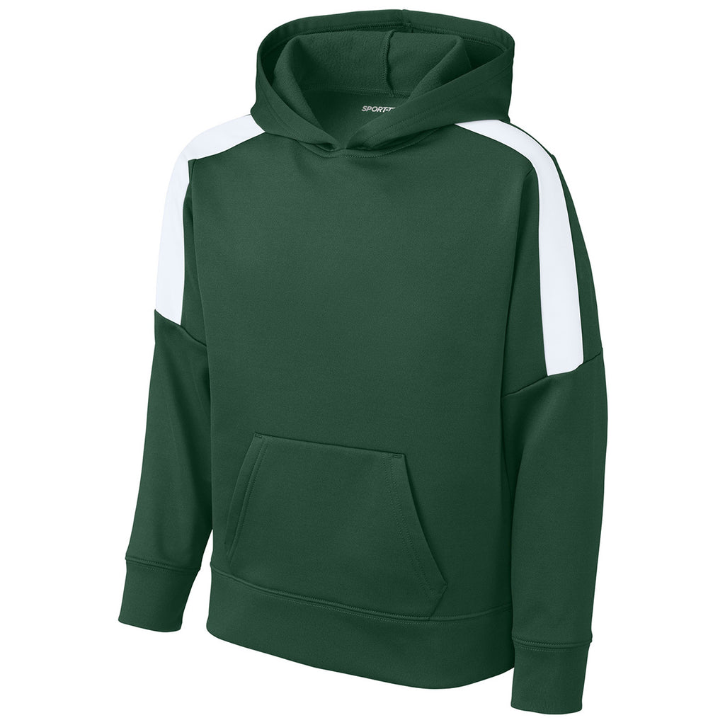 Sport-Tek Youth Forest Green/ White Sport-Wick Fleece United Pullover Hoodie