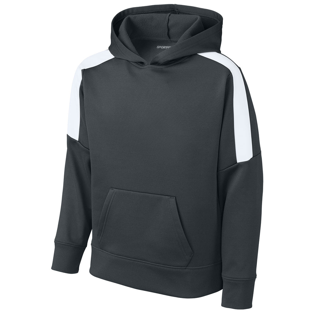 Sport-Tek Youth Iron Grey/ White Sport-Wick Fleece United Pullover Hoodie